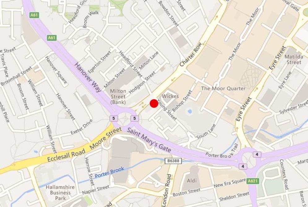 Dearing House is a prominent office building, situated fronting St Mary's Gate roundabout, providing excellent access to all the city centre amenities as well as excellent transport links onto the inner ring road. The main retail pitch of Sheffield, The Moor, is situated immediately behind the property providing an abundance of shops, cafes and restaurants for staff.