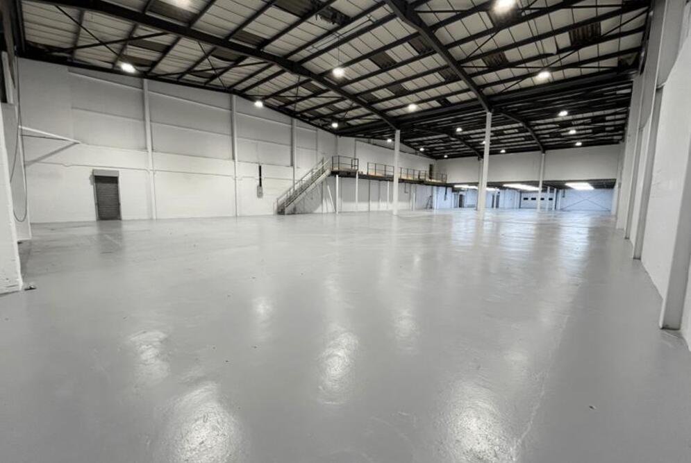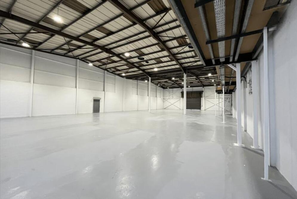 The warehouse offers an eaves height of 6.1m, rising to 7.2m at the apex. Two electric roller shutter doors are positioned at either end of the unit to facilitate efficient access and circulation.
