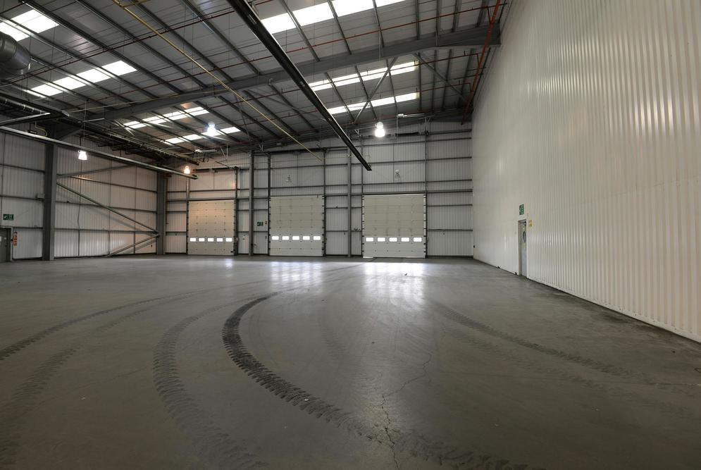 The interior of the building provides 289805 sq ft/26923.58 sq m. 12 m - 16 m to the haunch. Three storey offices. 1.2 MVA power supply. LED lighting. Sprinkler system (2 tank supply). Extensive yard areas. 3 level access loading doors. 20 dock level loading doors. Expansion plan. 17.5 acre self-contained site. Van despatch area with 4 doors. Low site density. vehicle wash area