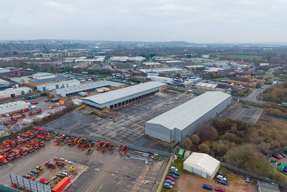 The property comprises two steel portal framed warehouses and a large concrete yard. Unit 1 provides road facing two storey offices.