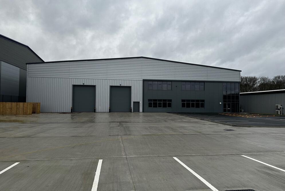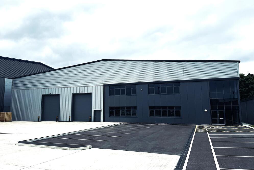 The building is a duo pitched steel frame construction, with a mixture of full height factory finished steel cladding, using a mix of micro-rib and trapezoidal profiles. The roof is to be a factory finished metal cladding system, complete with angled fascia's and soffits.