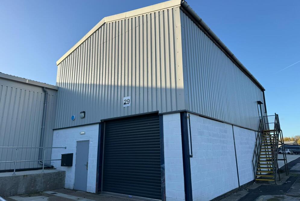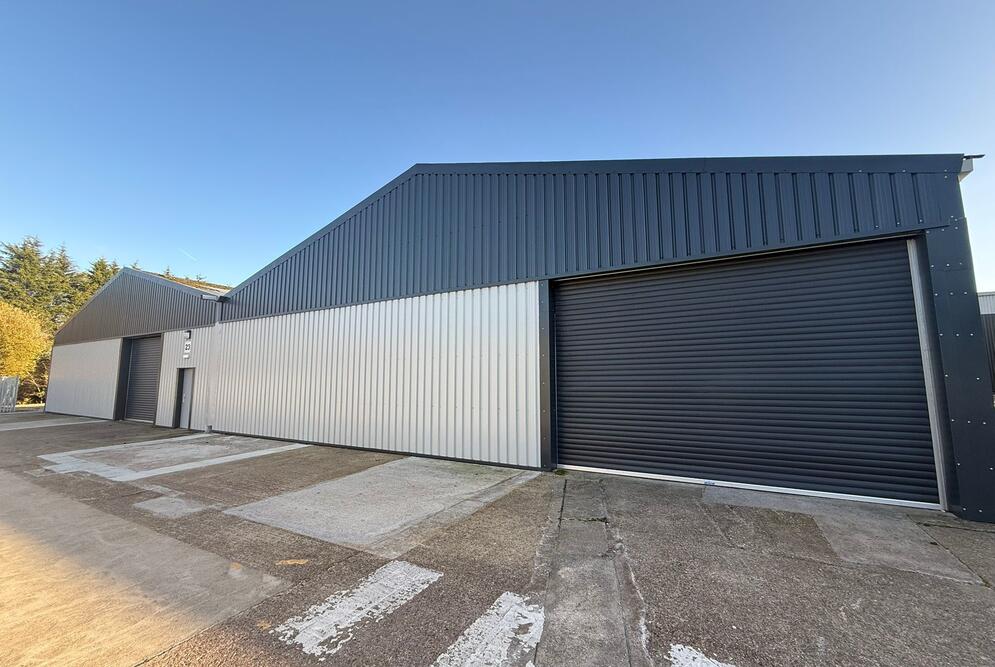 The properties are arranged within a detached terrace of steel portal frame units that have been overclad and set beneath a pitched roof as part of recent refurbishment works.
