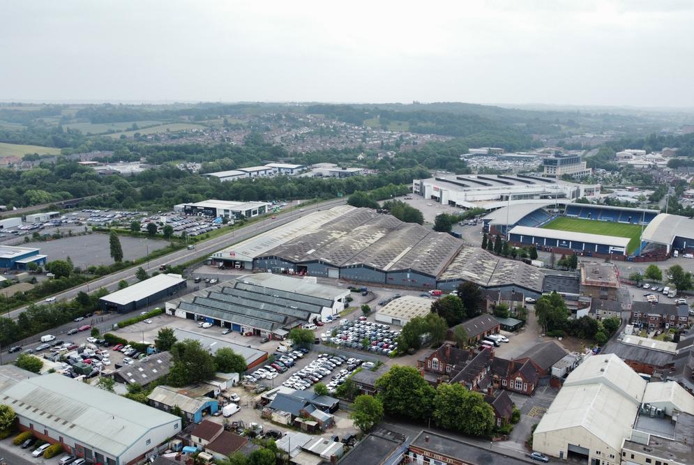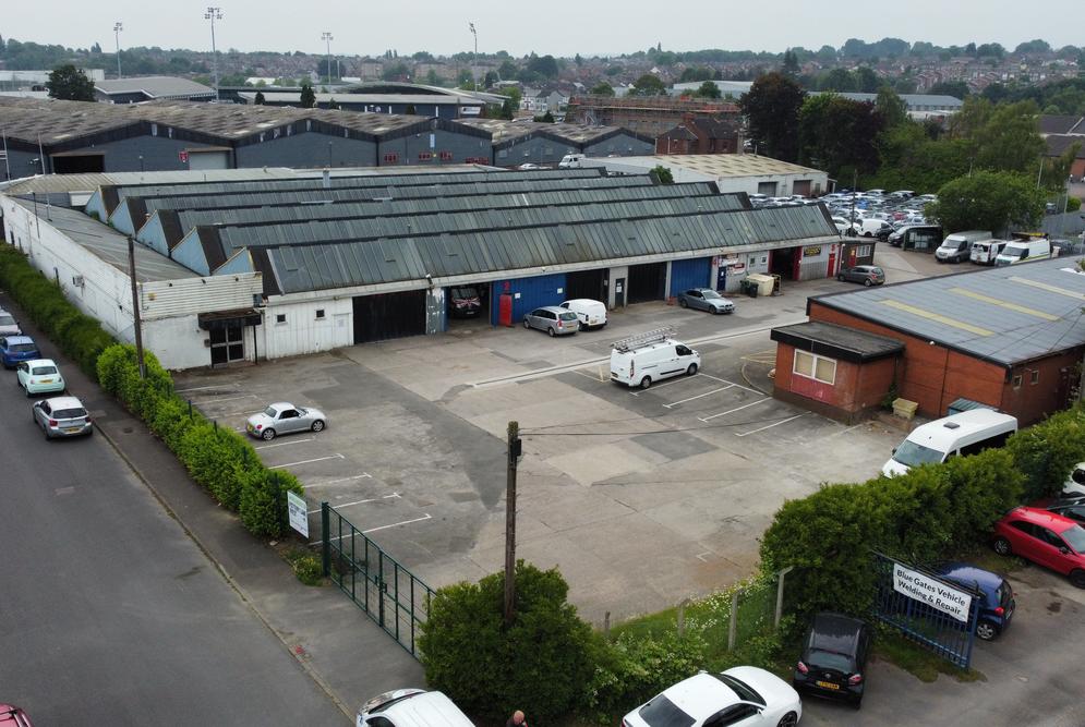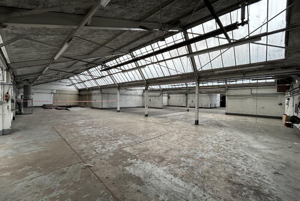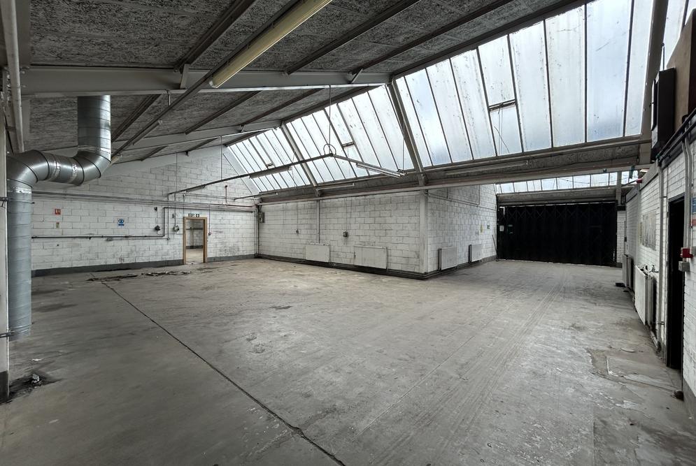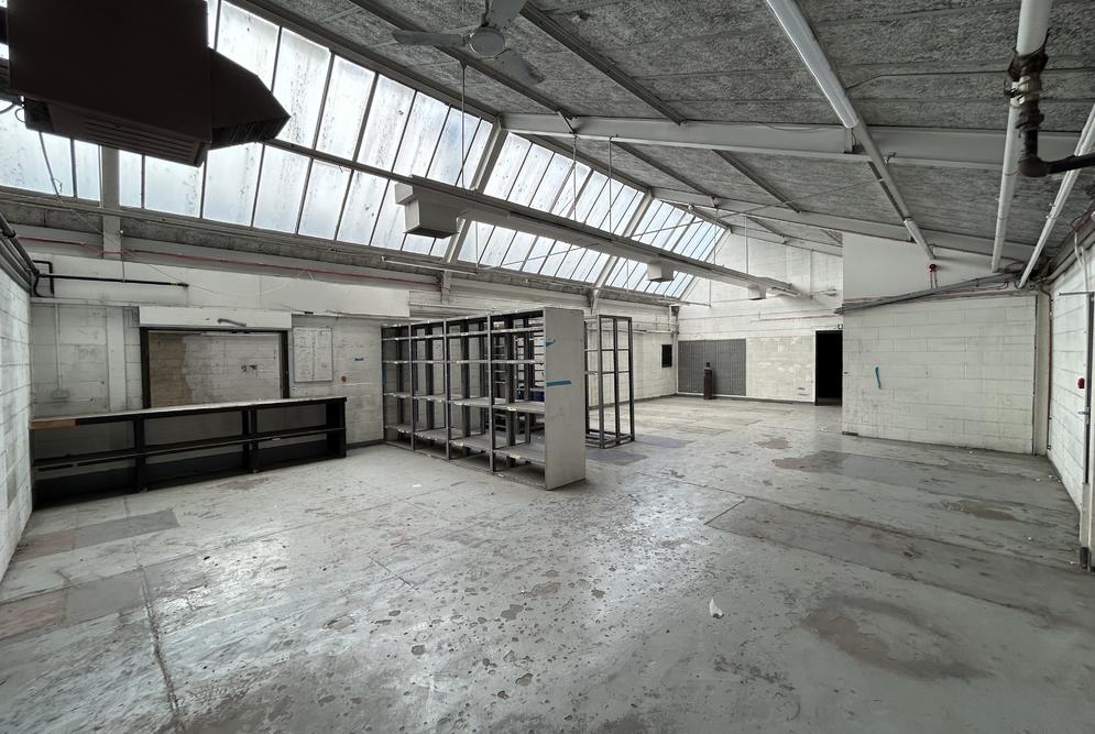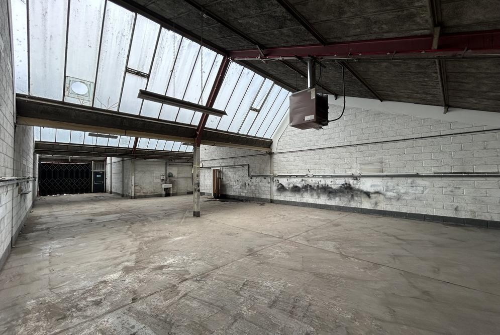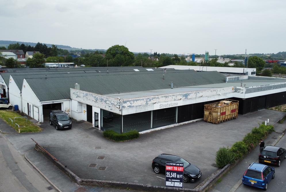 The building primarily features a steel portal frame with clad construction and a sawtooth pitched roof. It is divided into two main sections: a glass-fronted showroom with an internal office facing Pottery Lane West, and a workshop/warehouse at the rear, accessible via large roller doors or through the showroom. Additional office space is situated along the side of the workshop. The property also includes a private front yard and a shared rear yard, offering ample parking and convenient access for HGVs.