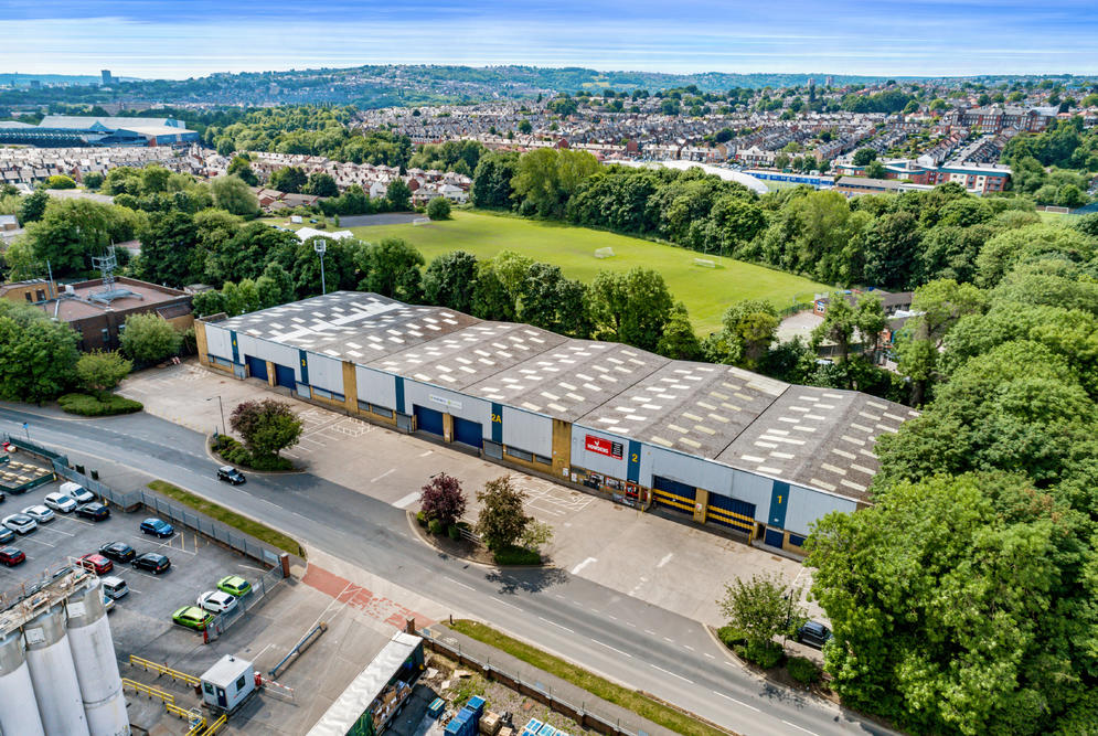 The property comprises a terrace of six steel portal-framed units with brick and blockwork walls, clad elevations and a single-pitched, profile-clad roof. Howdens currently occupy Units 1 & 2 with the remaining units available as a whole or sub divided. The smallest unit is 7,100 sq ft with all units combined offering close to 30,000 sq ft. The previous tenant created a double unit and therefore flexibility is available on site in terms of sizes. The units are undergoing extensive refurbishment due to complete imminently, and occupy a prominent position close to Penistone Road A61.