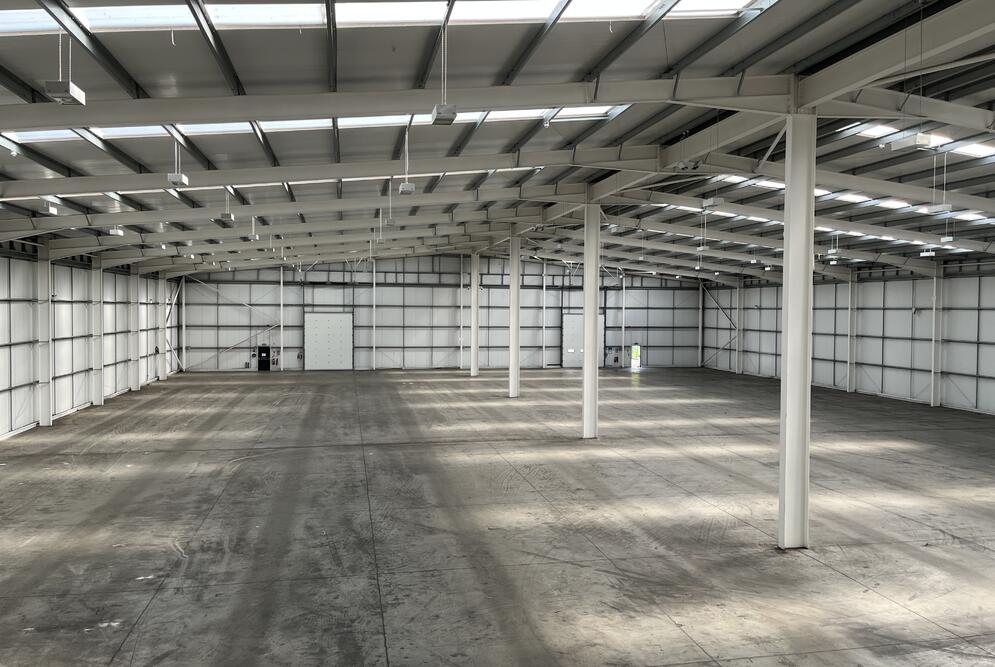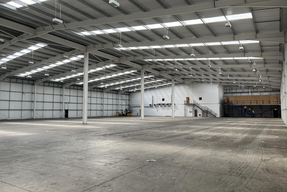 The property comprises a detached, modern, steel portal frame warehouse building with the following key features: