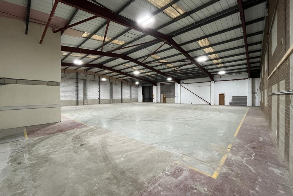 The property comprises a terraced industrial/warehouse unit with associated office and welfare facilities. The warehouse provides clear span accommodation, and the property benefits from a secure shared yard with separate parking provision for 14 cars.