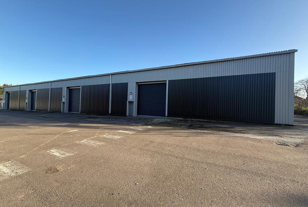 The properties are arranged within a detached terrace of steel portal frame units that have been overclad and set beneath a pitched roof as part of recent refurbishment works.