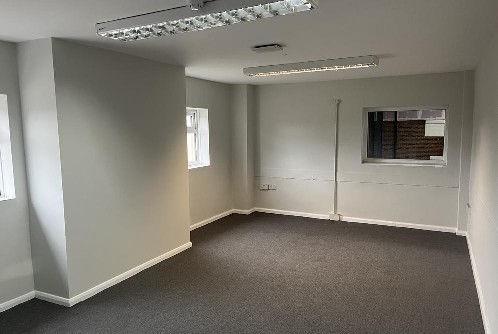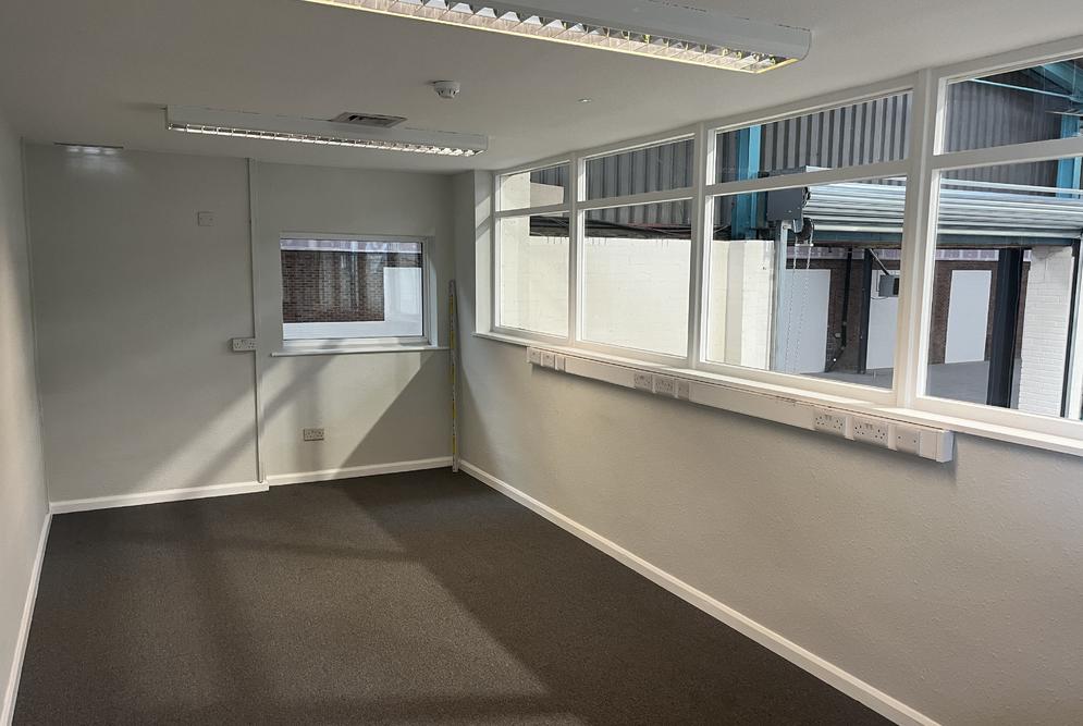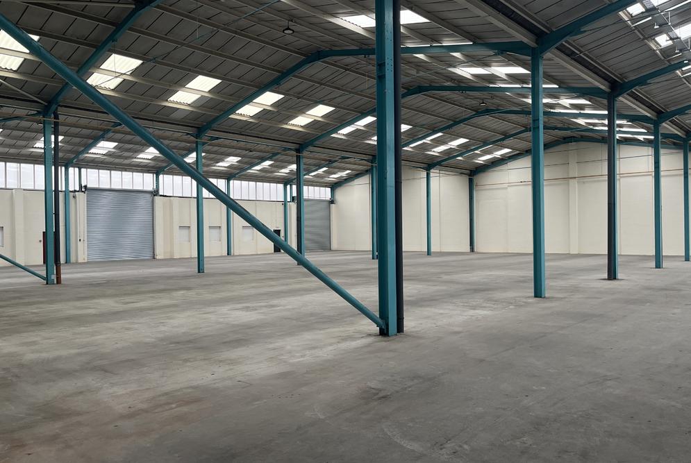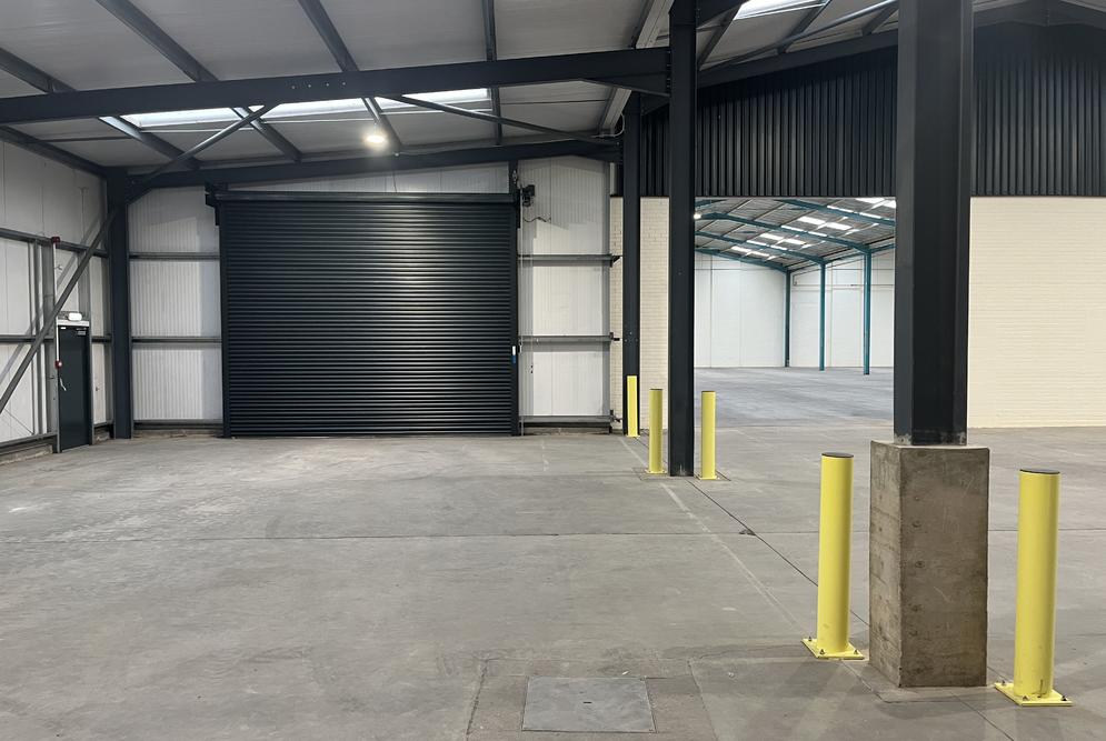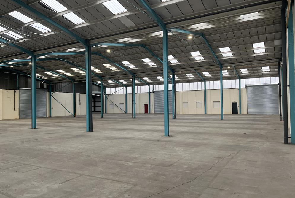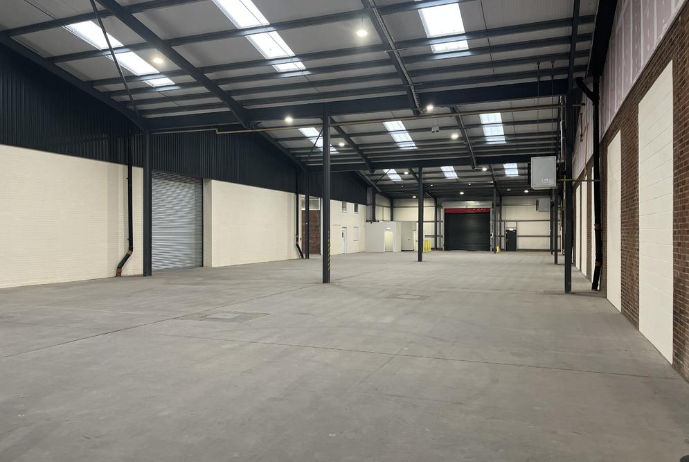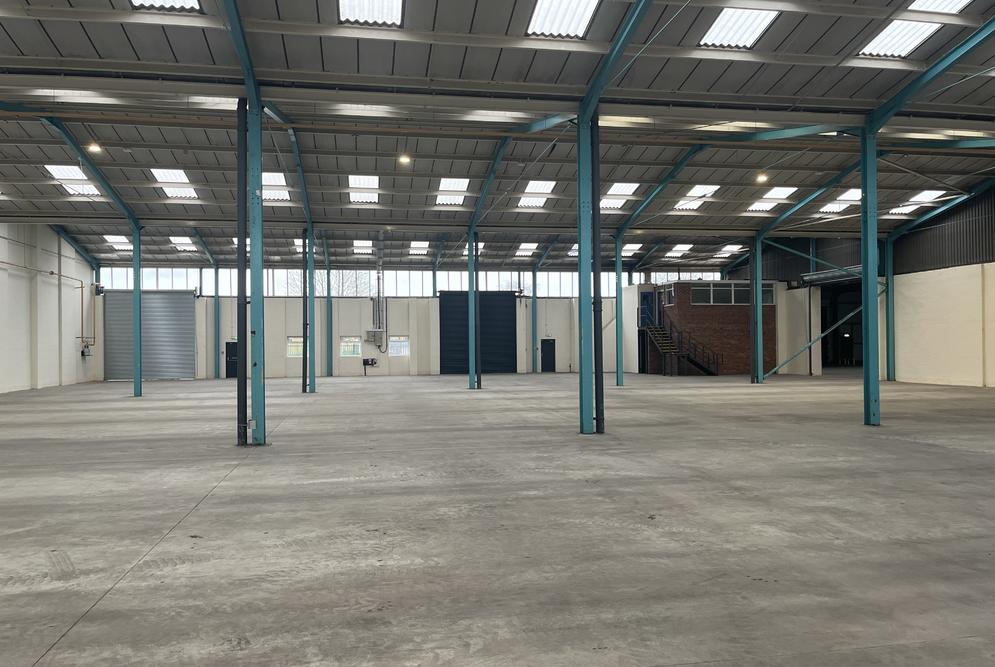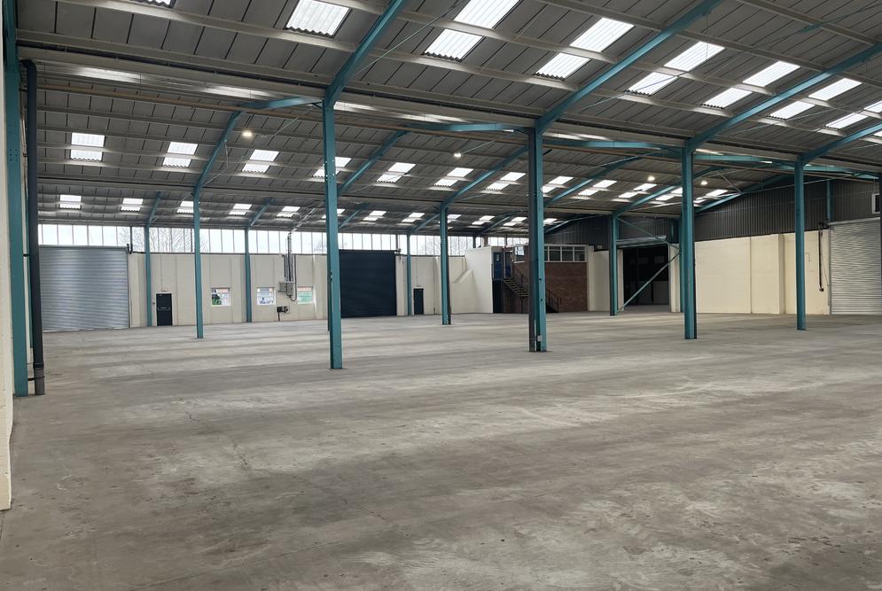 The property is of a steel portal frame construction, providing accommodation across 3-principal bays. The elevations are of brick and blockwork with high-level glazing around the eaves